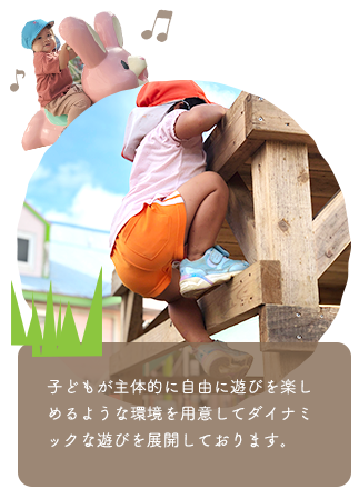 子どもが主体的に自由に遊びを楽しめるような環境を用意してダイナミックな遊びを展開しております。