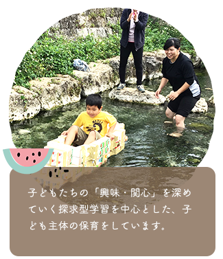 子どもたちの「興味・関心」を深めていく探求型学習を中心とした、子ども主体の保育をしています。